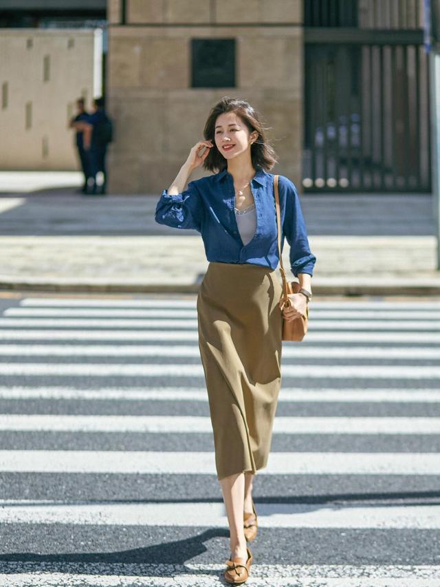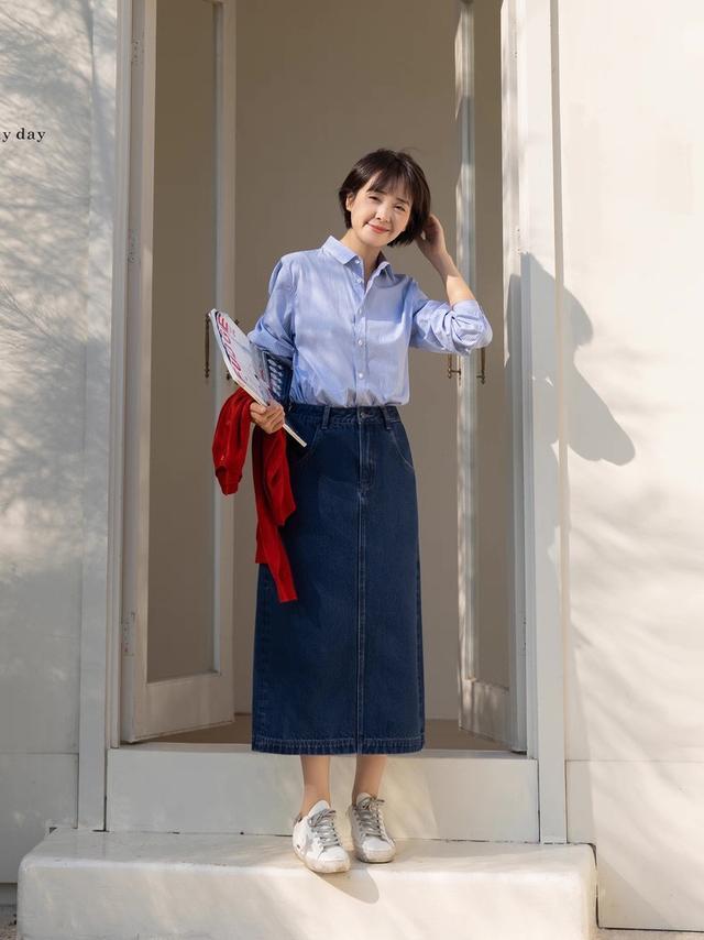浅薄穿搭,我依然可爱穿蓝衬衫,配条丹宁蓝牛仔裙,解析干净,纵情中又透露着高智感,终点耐看。