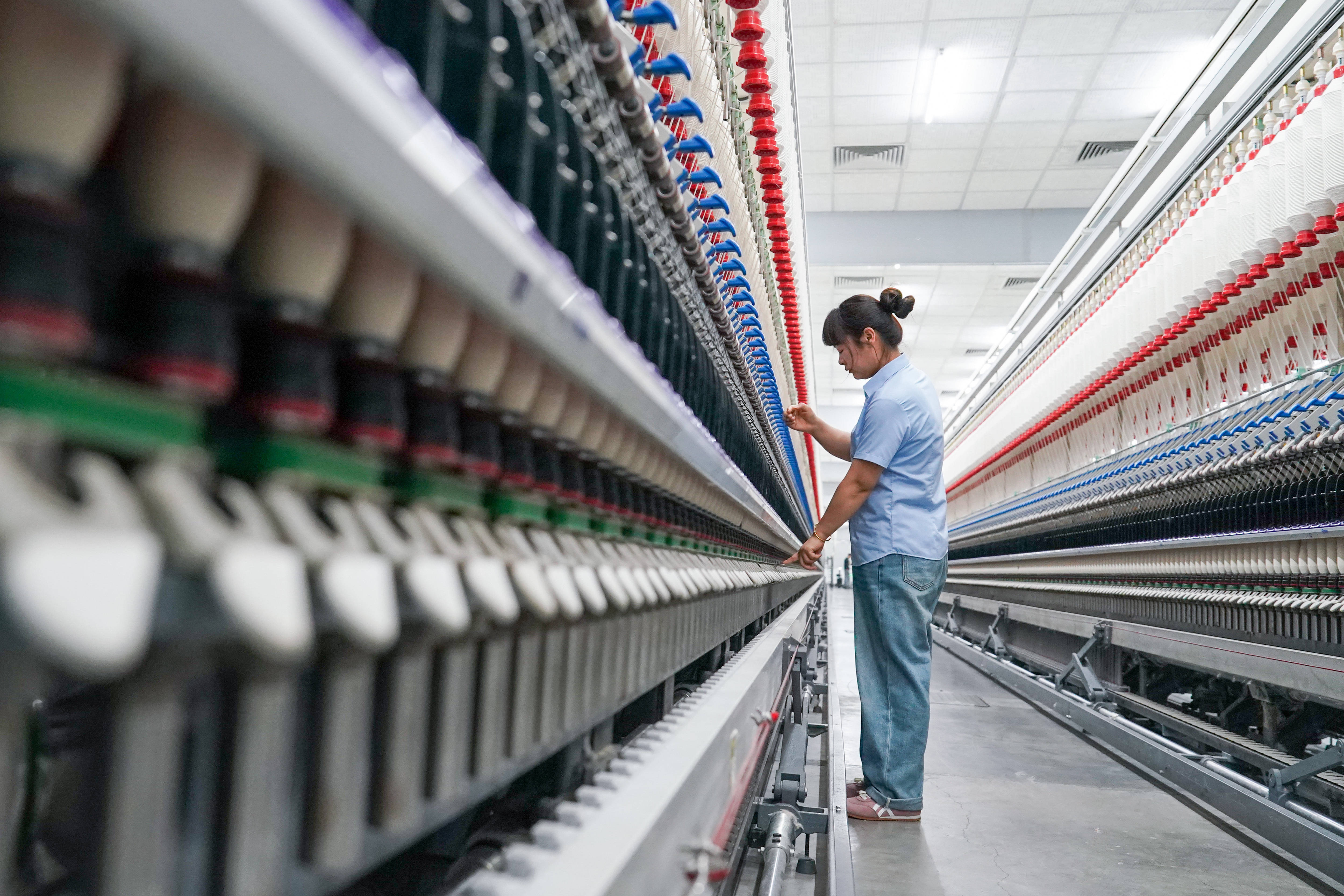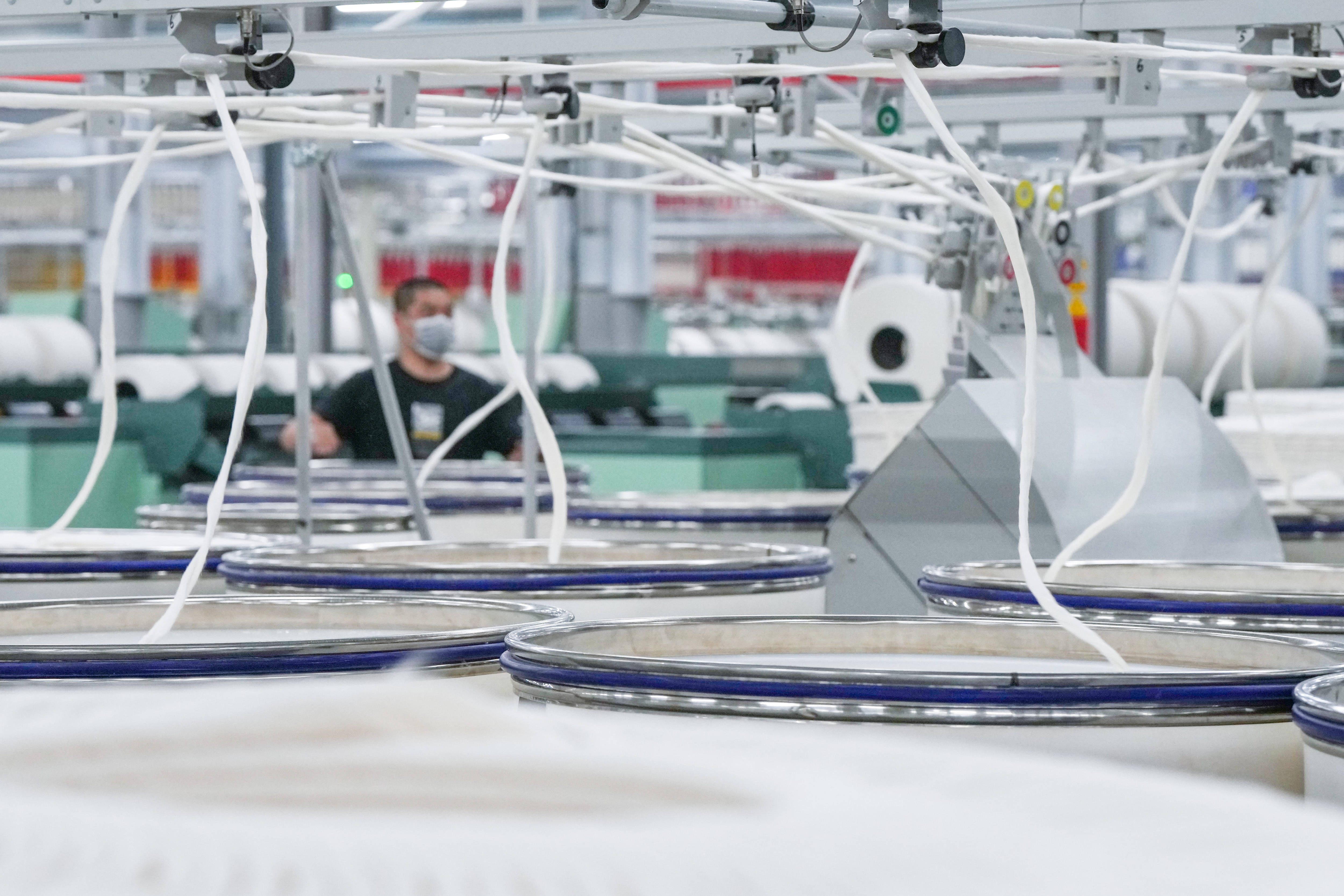 工东谈主在江苏悦达纺织集团智能坐蓐车间内使命(2026年3月25日摄)。新华社记者李博摄本年年头,这家企业被世界经济论坛评为全球棉纺织行业的第一座“灯塔工场”,记号着其在智能制造和数字化鸿沟达到全球制造业的进打水平。