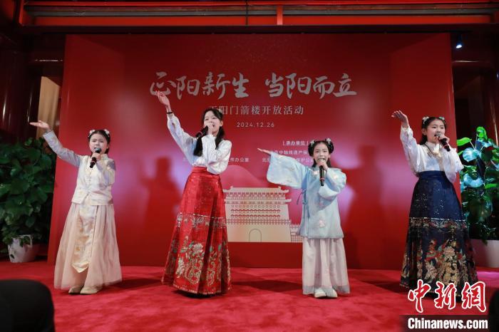 “北京中轴线文化传播小使臣”代表小熊乐团现场扮演。 主持方供图 箭楼内一至三层设有《北京中轴线——中国理思齐城纪律的宏构》专题展览,分为遗产描写、遗产价值、保护与惩处三个部分。四层设有非遗展示区域。不雅众可通过“北京中轴线遗产保护中心”微信公众号预约次日及7日内参不雅。 在绽开日本日,正阳门箭楼内举办了以“正阳重生 当阳而立”为主题的绽开活动。“北京中轴线文化传播小使臣”代表小熊乐团演唱歌曲《北京雨燕》。北京建造大学建造与城市霸术学院杨振训诲向北京中轴线基金会捐赠长达7.8米的立面长幅国风图文画卷《北京中轴线图卷》,并由基金会转赠北京中轴线遗产保护中心。同期举办中国邮政正阳门明信片拓印、中轴线遗产点钤记打卡、中轴线台历签赠、雨燕风筝制作、古琴演奏、茶艺扮演以及“我与正阳门的故事”巨匠共享等丰富多彩的活动。