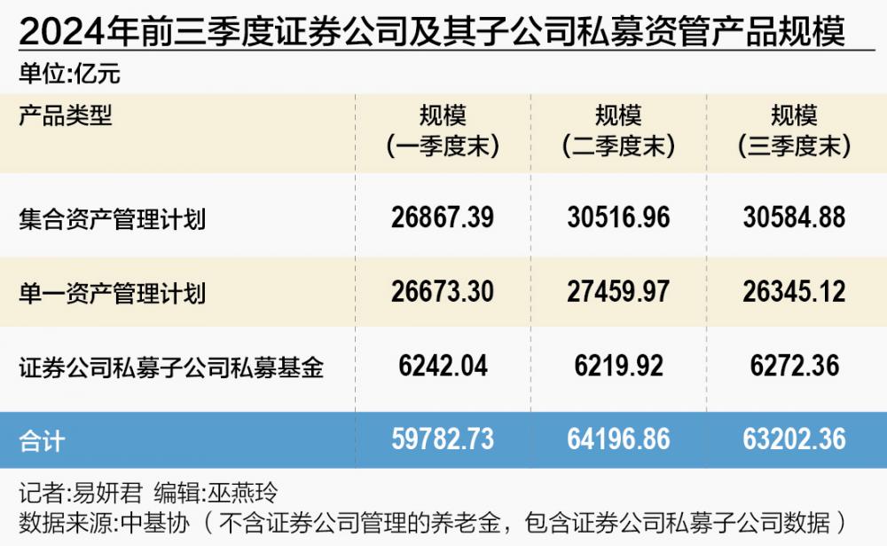 把柄中基协12月初露馅的数据,适度2024年三季度末,证券公司很是子公司私募钞票管束产物规模6.32万亿元(不含证券公司管束的待业金,包含证券公司私募子公司数据)。